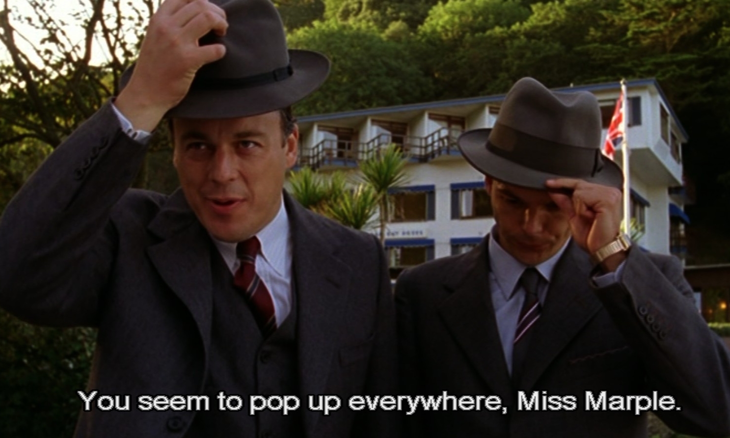 影視方面的改編,我查到有三。首先是2007年法國電影L’heure zéro裡,偵探還是巴鬥主任;接著是2008年的瑪波探案影集,第三季第三集,我很認真看完了,下面六張截圖就是這個版本,偵探很明顯改成瑪波小姐了,由Geraldine McEwan擔綱,劇情少了原著中第二章裡尋短的安格斯.麥沃特,他最後的角色直接讓湯瑪士.羅伊德取代了,反正失意男一個就夠。然而因為由官方偵探巴鬥主任改成瑪波小姐,所以在蒐集線索時瑪波小姐顯得相當不利,所以劇中不論是在海邊、在訊問時,都可以看到瑪波小姐就隔牆有耳偷聽別人講話,明明那個距離就遠的要命;最後是2025年的BBC推出的迷你影集,有三集,偵探不是巴鬥主任也不是瑪波小姐,場景搬到現代,希望我訂閱的MyVideo可以上架。