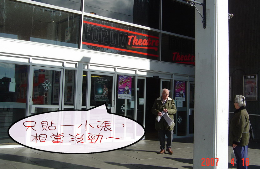 離我最近的上演地點是位於Billingham的Forum Theatre,從新堡(Newcastle Upon Tyne)搭火車約莫半小時可以抵達。Billingham 是一個僅三萬四千人的小鎮,與預期相同,在場沒有東方人,也少見年輕面孔。本劇最早於1958年八月在倫敦的 Duchess 劇院上映,長達18個月,當然與演出達50年以上的《捕鼠器》(Mousetrap)無法相比,不過據知名不具賣票老王的說法,這也是相當受歡迎的戲碼,而且是克莉絲蒂最好的劇本之一(One of Christie’s best plays,自家網站的說法,聽聽就算)。這也是繼2006年的《The Hollow》之後,Agatha Christie Theatre Company 推出的第二部戲,從2007年1月9日開始,到11月10日在英國各地巡迴演出,將近一年。