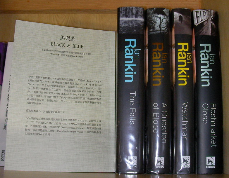 第一次對伊恩.藍欽有印象,是在Waterstone’s書店翻到他的作品,當時台灣全無中譯,自己也沒認真研究一下這位作家的風格什麼的,只知道是位年輕作家,得過鑽石匕首獎,當時我一度杞人憂天地想,都已經頒給年僅46歲的伊恩.藍欽,難道老一些的作家都已經得過了?那明年鑽石匕首獎不就可能會從缺了嗎?哪裡來這麼多年輕才俊,足堪以推理大師稱之啊?結果證明我完全是自己想太多,CWA隔年頒給美國作家艾爾默.李納德(Elmore Leonard),他足足大了藍欽35歲。一來年紀或國籍不是限制條件,二來鑽石匕首本來就不是敬老獎,藍欽有本事在40多歲得獎完全是藍欽厲害,而我上述的幻想,則完全是我自己腦筋太死所致。