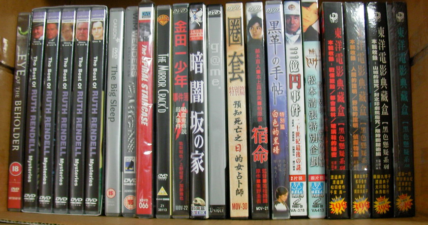 ![]() 再見吾愛,第一死罪(三區中文),瘦子(三區中文),《歌唱神探》電影(港譯奇探心魔),無盡的夜,The Mrs Bradly Mystery,幾部台版影片,兩部巴斯克維爾的獵犬(福),四簽名(福),Arthur Wontner三部福爾摩斯合一片DVD,The Deadly Necklace(福),福爾摩斯聰明的弟弟的冒險(福),哈瓦納特派員,桃色血案,PD James某影集,豪門恩怨(錢德勒),喜劇巴斯克維爾的獵犬(福),Murder by Decree(福)。 |