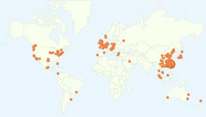 ![]() 圓點大小表示來自該城市的流量大小,台灣已經被蓋住了。