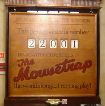 《捕鼠器》是史上演出最久的戲劇,從1952年11月上演至今尚未終止,根據英文維基百科的資料,截至今年二月七日為止,已上演超過23,000場,非常長壽的一齣戲。