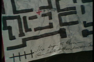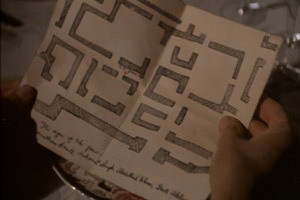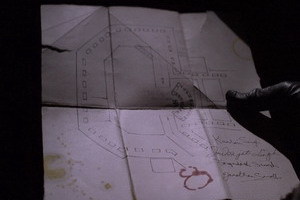 我的志文版小說裡有插圖(怪的是遠流版的沒有),照理說只要原圖呈現就可以了,不過拍戲的人似乎不是這麼想,來看看以下的眾多「四個簽名」與地圖。