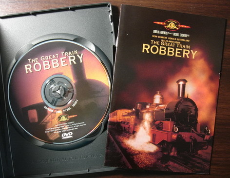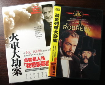 附上日本版的應該是電影原聲帶封面,翻作《大列車強盜》實在亂有意思的。台版的三區DVD,內附彩色小冊一本,特別收錄有麥克.克萊頓自己的講解,買DVD收藏算是不錯的選擇。